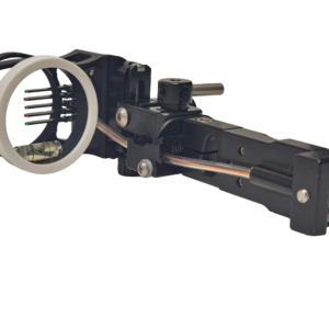 Venom Pro XL five-pin bow features a longer, adjustable sight radius that allows the user to find the perfect peep-to-pins distance. It is constructed of machined and anodized 6061 T6 aluminum with stainless steel hardware for strength, rigidity and durability. The Venom Pro XL’s aluminum sight housing has a 2-inch aperture that is threaded to accept optional Zeiss coated lenses. A highly visible 0.35-inch diameter, 1-inch-long bubble level is located at the bottom of the housing. Four or Five aluminum Razor Pins are independently adjustable for elevation, and three diameters of fiber-optic threads are available: 0.010-, 0.015- or 0.019-inch.